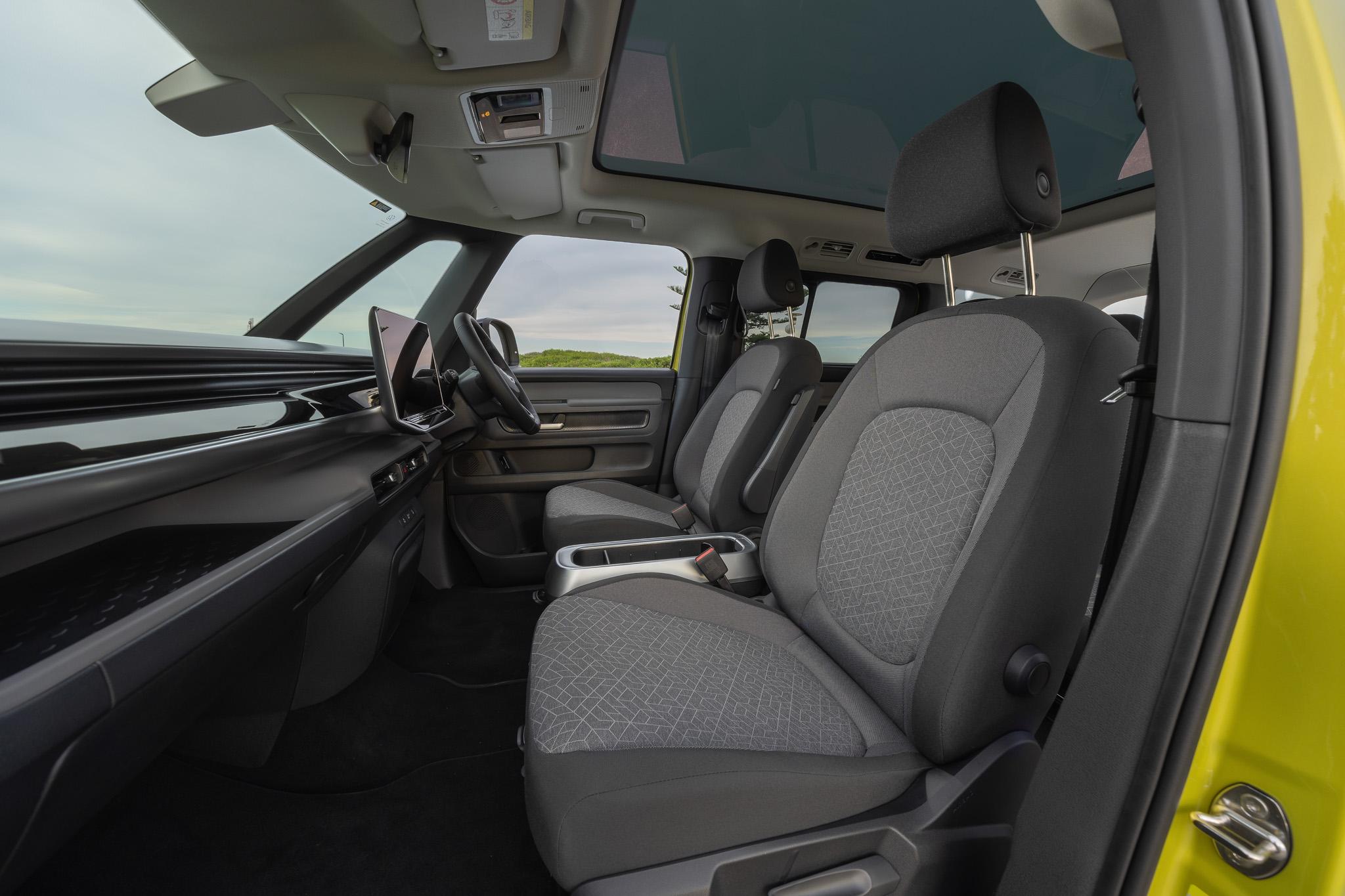 The standard ID. Buzz comes with a 210kW/560Nm electric motor powering the rear wheels, and standard equipment includes 19-inch alloy wheels, matrix LED headlights with adaptive high-beam, adaptive cruise control and ‘easy open’ powered sliding doors.